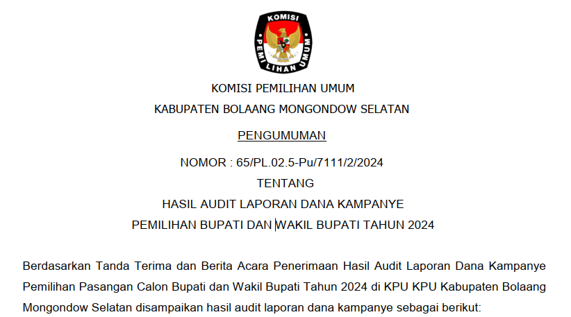 Berdasarkan Berita Acara Pelantikan Anggota Kelompok Penyelenggara Pemungutan Suara di seluruh Kabupaten Bolaang Mongondow Selatan, disampaikan hal-hal sebagai berikut: