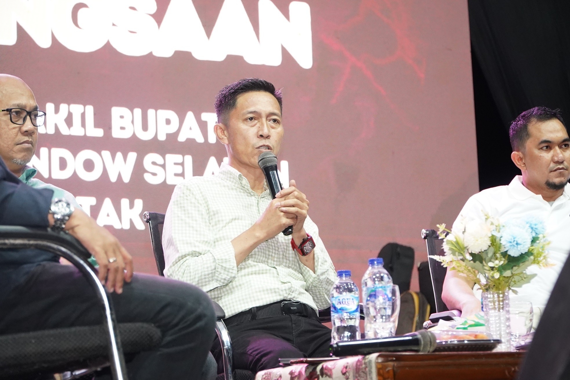Dialog Kebangsaan yang mengusung Tema Pemilihan Bupati dan Wakil Bupati Kab. Bolaang Mongondow Selatan Tahun 2024 ini menghadirkan 4 orang Narasumber yang berasal dari berbagai unsur yang sangat relevan terhadap persoalan yang diperbincangkan, diantaranya Bupati Bolaang Mongondow Selatan yakni H Iskandar Kamaru S.Pt M.Si., Ketua KPU Bolsel yakni Stanly E. Kakunsi, Ketua Bawaslu Bolsel yakni Wira Bijuni, dan Penggiat Pemilu sekaligus Ketua KPU Boltim Periode 2019-2023 yakni Jamal Iron Rahman, serta dipandu oleh Moderator yakni Kepala Dinas Pariwisata Bolaang Mongondow Selatan, Wahyudin Kadullah, S.Ip., MM.
