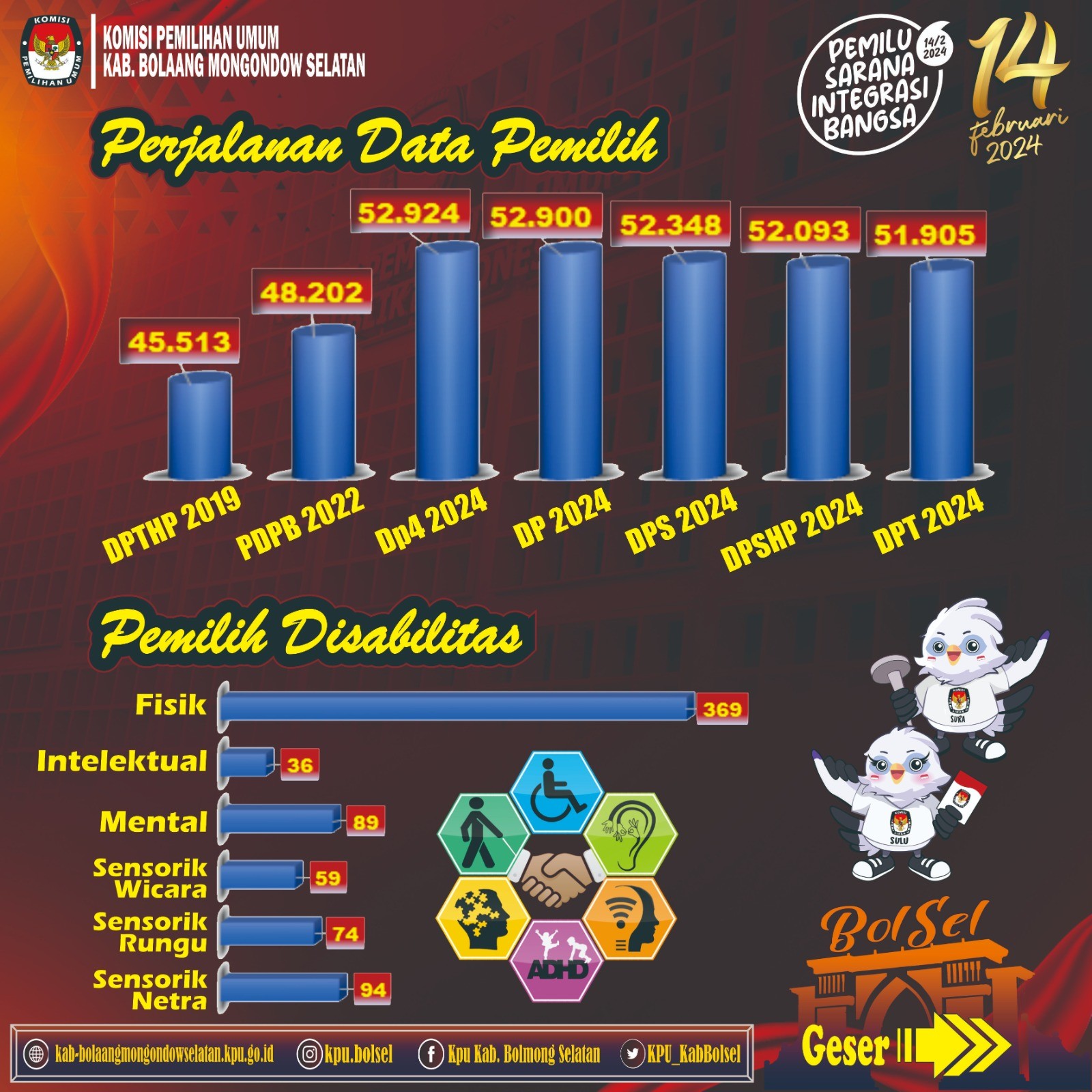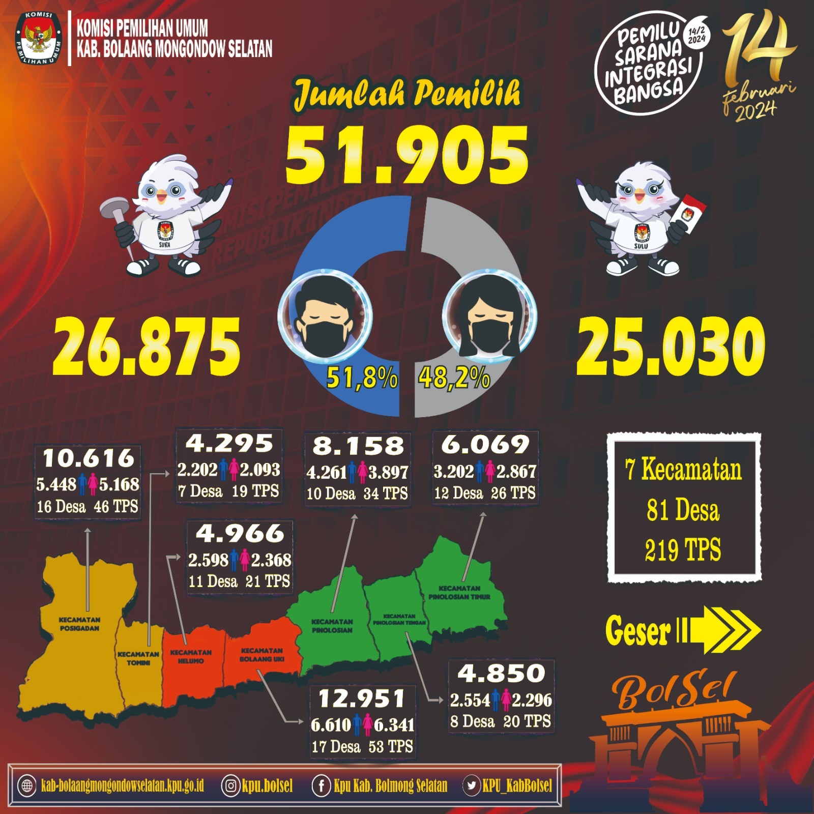 Berikut Infografik DPT Tingkat Kabupaten Bolaang Mongondow Selatan pada Pemilu 2024: