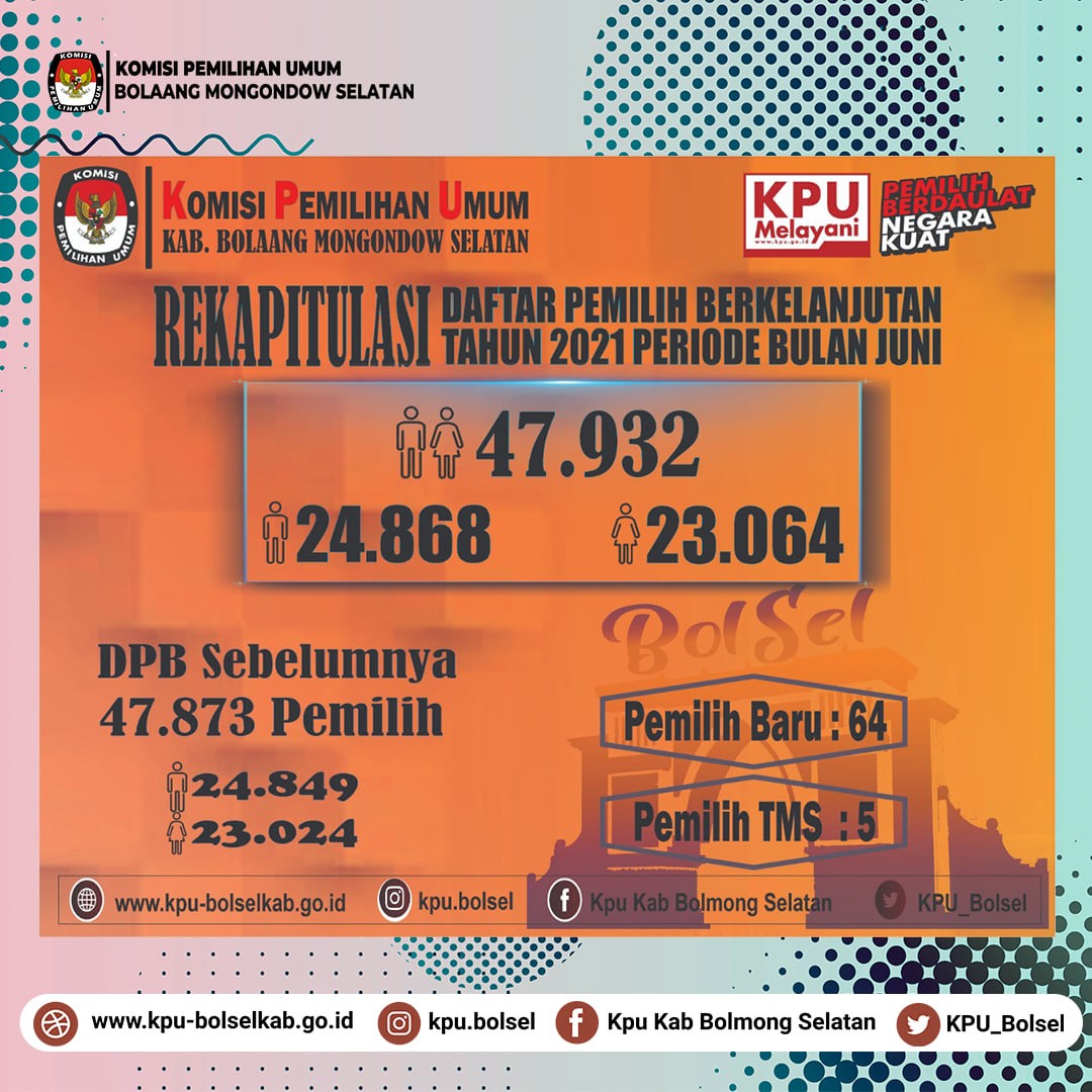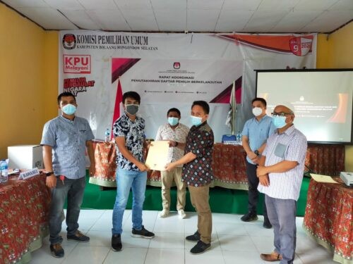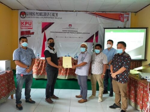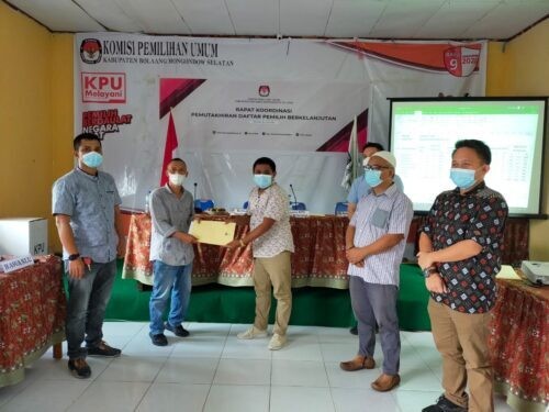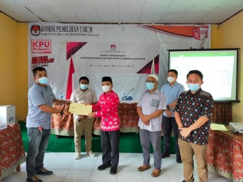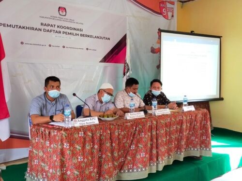 Bolaang Uki - 2 Juli 2021, KPU Kabupaten Bolaang Mongondow Selatan melaksanakan Rapat Koordinasi Pemutakhiran Daftar Pemilih Berkelanjutan (DPTb) yang dihadiri secara langsung oleh beberapa stakeholder diantaranya perwakilan dari Badan Pengawas Pemilu, perwakilan dari Dinas Kependudukan dan Catatan Sipil, Kepala Kantor Kesatuan Bangsa dan Politik, serta perwakilan dari Partai Demokrasi Indonesia Perjuangan.