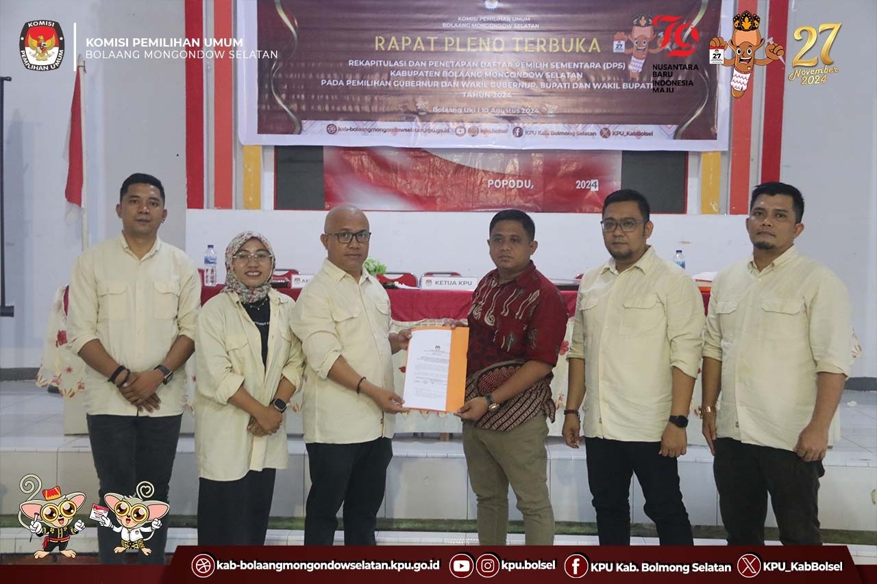 Rapat Pleno ini, dibuka oleh Ketua KPU Bolsel, Stanly E. Kakunsi dan didampingi seluruh Anggota KPU Bolsel. Beliau menyampaikan bahwa, "Penetapan DPS ini merupakan hasil dari pleno DPHP tingkat Kecamatan yang sebelumnya dilaksanakan serentak pada Selasa (6/8) yang lalu", jelasnya.
