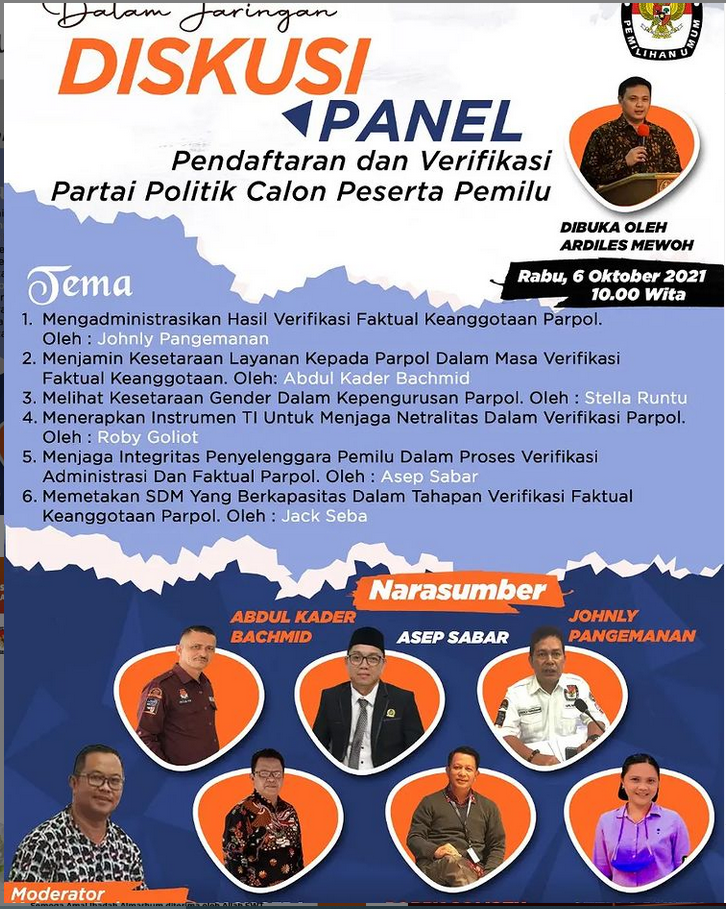KPU Bolsel ikuti Diskusi Panel Pendaftaran dan Verifikasi Parpol Calon Peserta Pemilu