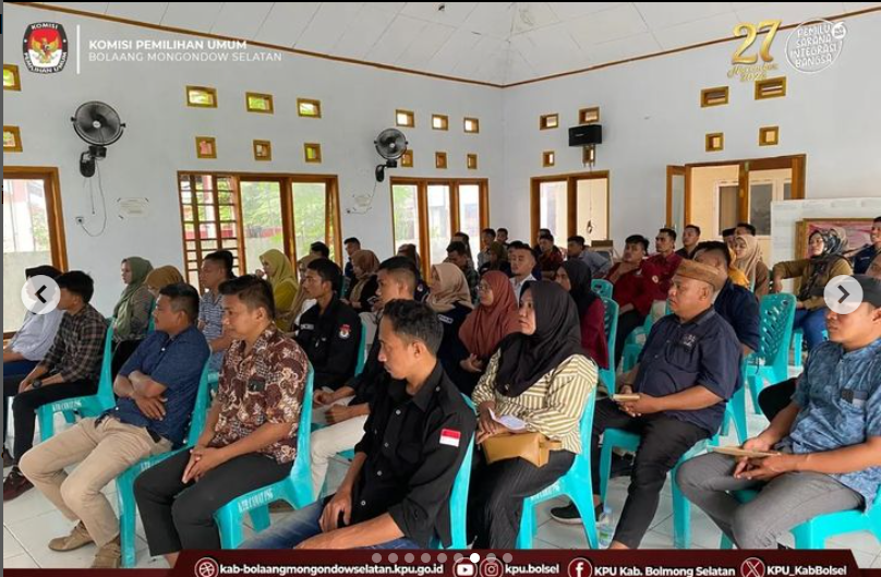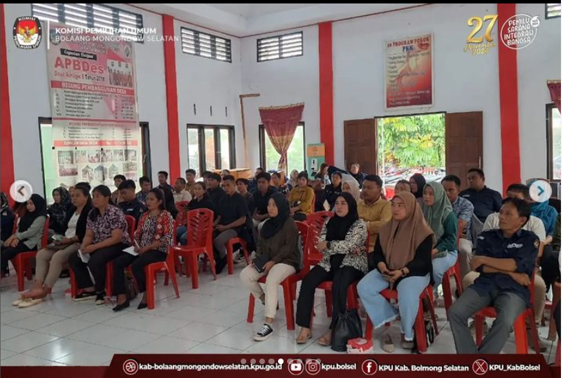 Halo #TemanPemilih, KPU Bolaang Mongondow Selatan sedang melaksanakan Bimbingan Teknis kepada anggota Panitia Pemungutan Suara (PPS) untuk pemilihan serentak tahun 2024. Kegiatan ini dijadwalkan akan dilaksanakan mulai Rabu (29/5) hingga Sabtu (1/6) di beberapa Kecamatan secara bergantian.
