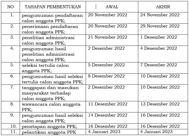 Pengumuman: Jadwal Pelaksanaan Perekrutan PPK