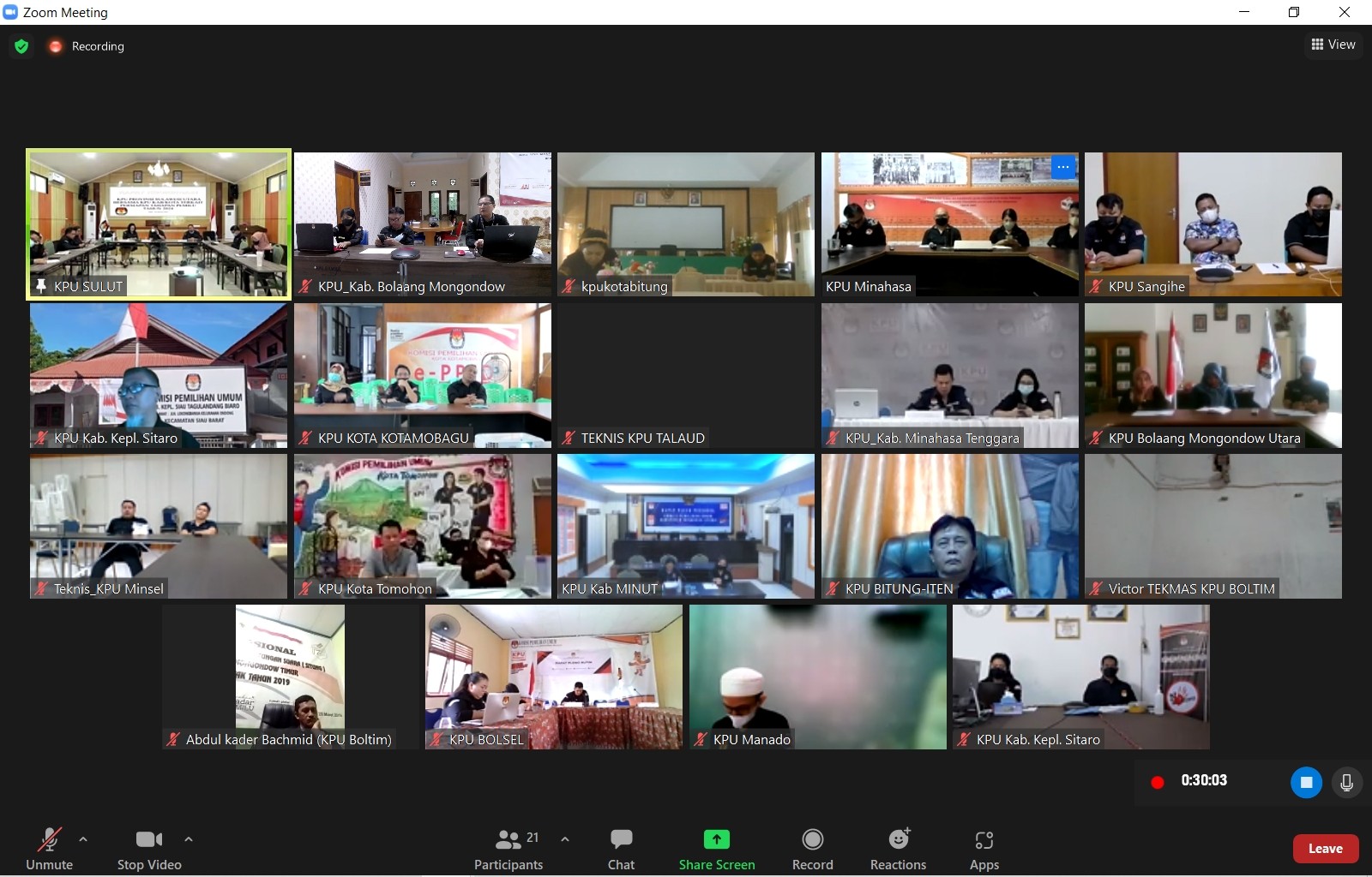 Hadir bersama KPU Kabupaten/Kota se Sulawesi Utara dalam kegiatan yang dilakasanakan secara daring (Rabu, 19 Januari 2022) ini, Fijey Bumulo selaku Ketua Divisi Teknis Penyelenggara, Greis Winda Tamba selaku Kepala Sub Bagian Teknis dan Hubungan Partisipasi Masyarakat bersama staf pelaksana Sub Bagian Teknis dan Hupmas KPU Kabupaten Bolsel.