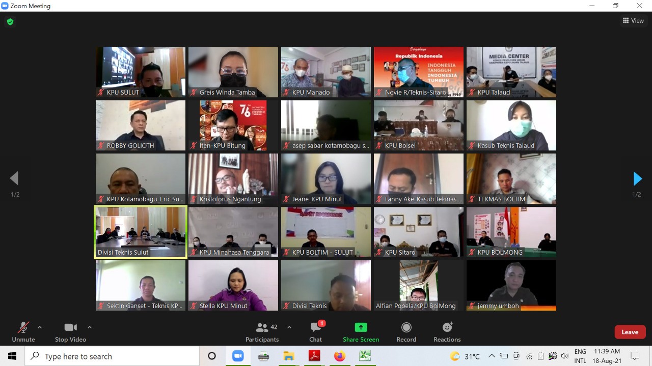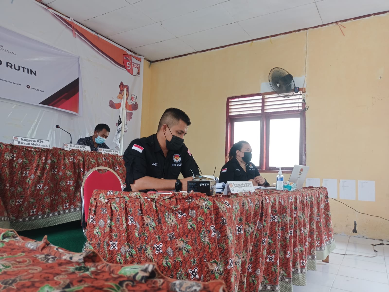 Rabu (18/8) KPU Kabupaten Bolaang Mongondow Selatan (KPU Bolsel) mengikuti Rapat Koordinasi Pendaftaran, Verifikasi, dan Penetapan Partai Politik yang diselenggarakan oleh KPU Provinsi Sulawesi Utara. Rapat Koordinasi yang diadakan secara daring ini oleh KPU Provinsi Sulawesi Utara diikuti oleh 15 KPU Kab/Kota yang ada di Sulawesi Utara serta dihadiri oleh seluruh Komisioner KPU Provinsi Sulawesi Utara.