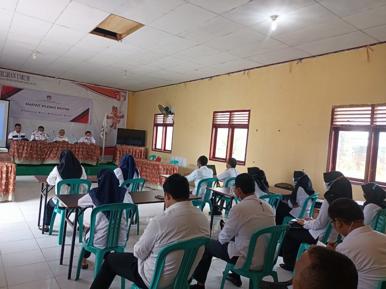 Senin, 12 Juli 2021, KPU Bolaang Mongondow Selatan melaksanakan Rapat Pleno Rutin di aula Sekretariat KPU Bolaang Mongondow Selatan. Dihadiri oleh unsur Pimpinan, Kasubbag, hingga Pelaksana. Kegiatan tersebut merupakan kegiatan rutin mingguan yang diamanatkan oleh Undang-Undang.