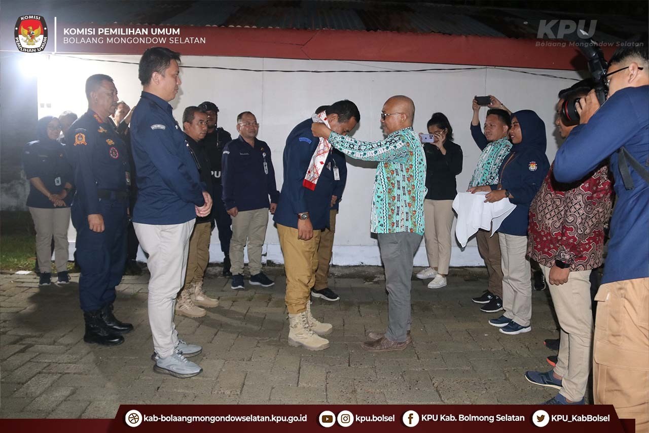 Bapak Drs. Bernad Dermawan Sutrisno, M.Si., beserta rombongan diterima secara langsung oleh Ketua dan Anggota KPU Kab. Bolaang Mongondow Selatan, Sekretaris KPU Prov. Sulawesi Utara, serta Sekretaris KPU Kab. Bolaang Mongondow Selatan beserta jajaran staf kesekretariatan.