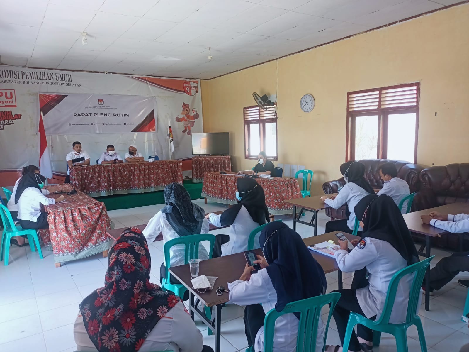 Bolaang Uki-Guna mengevaluasi kegiatan minggu lalu dan membahas rencana kerja kedepannya Komisi Pemilihan Umum Bolaang Mongondow Selatan melaksanakan Rapat Pleno Rutin (RPR) Senin (7/03/2022) pukul 10.00 WITA di Aula Kantor. Rapat dibuka langsung oleh Ketua KPU Bolsel Stenly E Kakunsi. Ketua Divisi Teknis-Parmas Fijey Bumolo menyampaikan bahwa akan ada kegiatan bakohumas “Kita akan ada kegiatan bakohumas yang rencananya akan dirangkaikan dengan rakor pemuktahiran data berkelanjutan dengan mengundang stakeholder” ujar Fijey. Fijey juga menyampaikain bahwa divisi parmas saat ini sedang merampungkan laporan triwulan pertama bakohumas. Selanjutnya Ketua Divisi Hukum dan Pengawasan Topan Bolilio menyampaikan mengenai laporan SPIP, “minggu kemarin kita telah melaksanakan rapat SPIP dan laporan terkait kartu kendali sudah dikirimkan ke Provinsi” Ujar Topan . Beliau juga menyampaikan bahwa ada keputusan nomor 57 tentang kode klasifikasi arsip naskah dinas, beliau berharap semua pegawai agar mempelajari dengan baik. Selanjutnya Sekretaris KPU Bolsel Rifton A.J Tulangow menyampaikan terkait dengan rakor pada masing-masing divisi agar kegiatan dapat dipersiapkan dan dilaksanakan dengan baik. Turut Hadir dalam RPR pagi ini yaitu Anggota KPU, Sekretaris, Kasubbag, Pelaksana, dan PPNPN di lingkungan KPU Bolsel. Isnaeni Khasanah Putri
