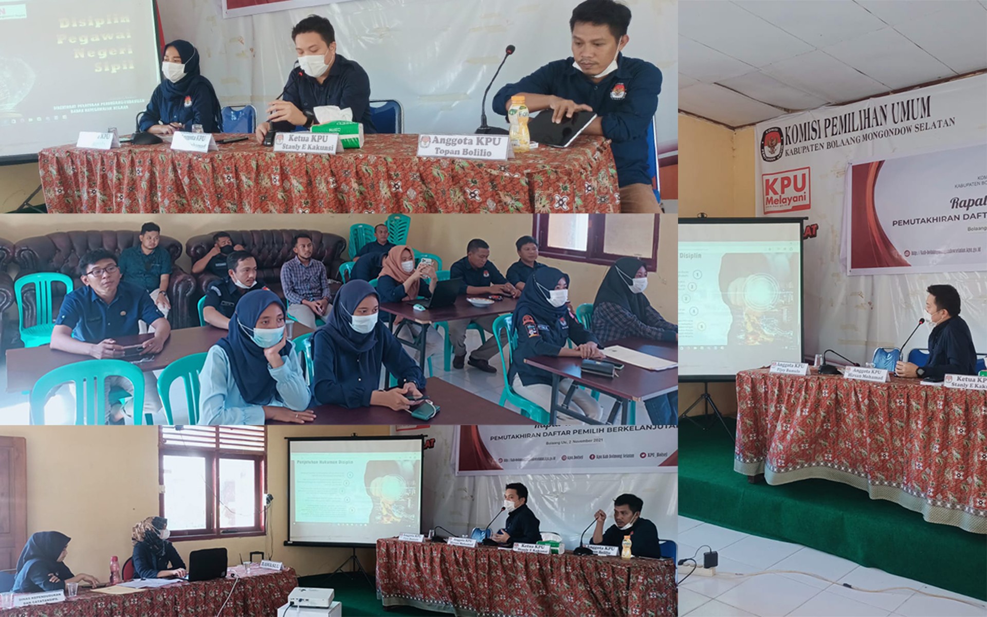 Bolsel - Dalam rangka keseragaman dan tertib administrasi penyusunan produk hukum di lingkungan Komisi Pemilihan Umum. Komisi Pemilihan Umum Kabupaten Bolaang Mongondow Selatan mengikuti rapat koordinasi peningkatan kapasitas dan kompetensi dalam penyusunan produk hukum yang digelar secara daring oleh KPU Provinsi Sulawesi Utara, (27/10/2021).