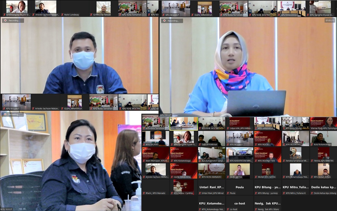 Rapat koordinasi ini dibuka langsung oleh Ketua KPU Provinsi Sulawesi Utara; Bapak Ardiles Mewoh, dilanjutkan dengan arahan dari Ketua Divisi Teknis Penyelenggaraan; Ibu Yessi Momongan dan Ketua Divisi Perencanaan, Data dan Informasi; Ibu Lanny Ointu.
