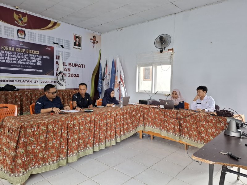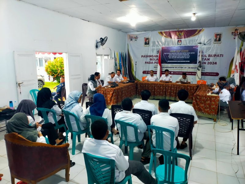 Komisi Pemilihan Umum (KPU) Kabupaten Bolaang Mongondow Selatan menggelar Forum Group Discussion (FGD) dengan tema "Pencalonan Anggota DPRD, Bupati dan Wakil Bupati serta Penataan Daerah Pemilihan (Dapil) pada Pemilihan Umum Anggota DPRD Kabupaten Bolsel."