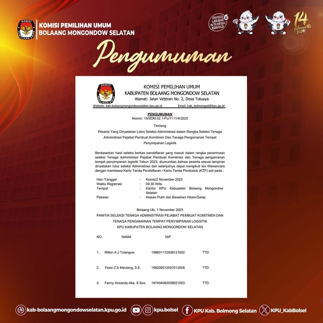 Halo #TemanPemilih, KPU Kab. Bolaang Mongondow Selatan melaksanakan Bimbingan Teknis Aplikasi Sistem informasi kampanye dan Dana Kampanye (SIKADEKA) kepada Parpol di Bolsel pada Kamis (16/11) di Aula KPU Kab. Bolsel. Kegiatan ini dihadiri oleh seluruh Operator yang tinjuk oleh Parpol untuk mengelola aplikasi tersebut.