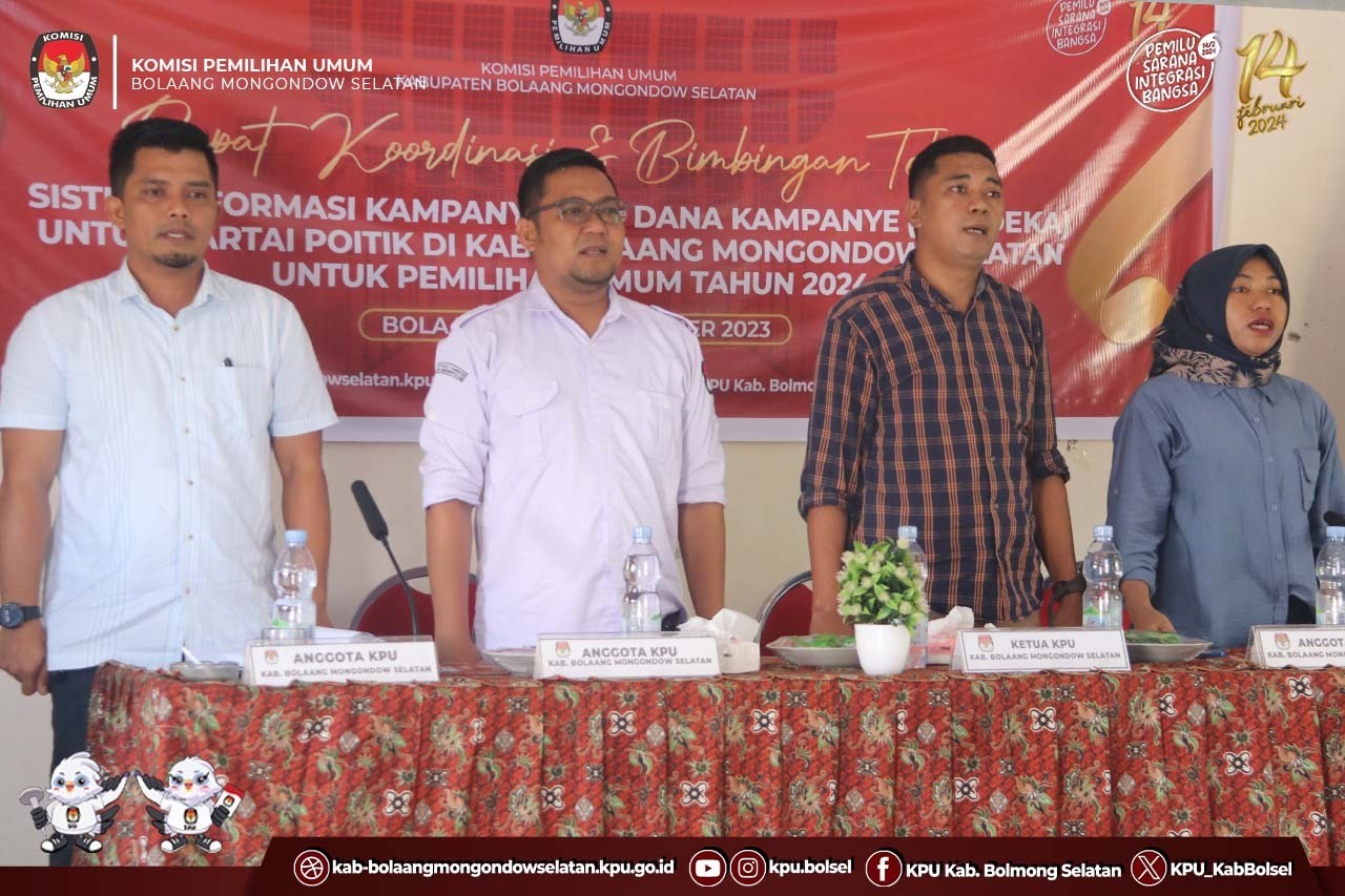 Kegiatan ini dibuka secara langsung oleh Plh Ketua KPU Bolsel, bapak Liswan Lumali. "Kegiatan ini sangatlah penting, karena semua kegiatan kampanye akan dilaporkan ke dalam Aplikasi".Ujarnya.