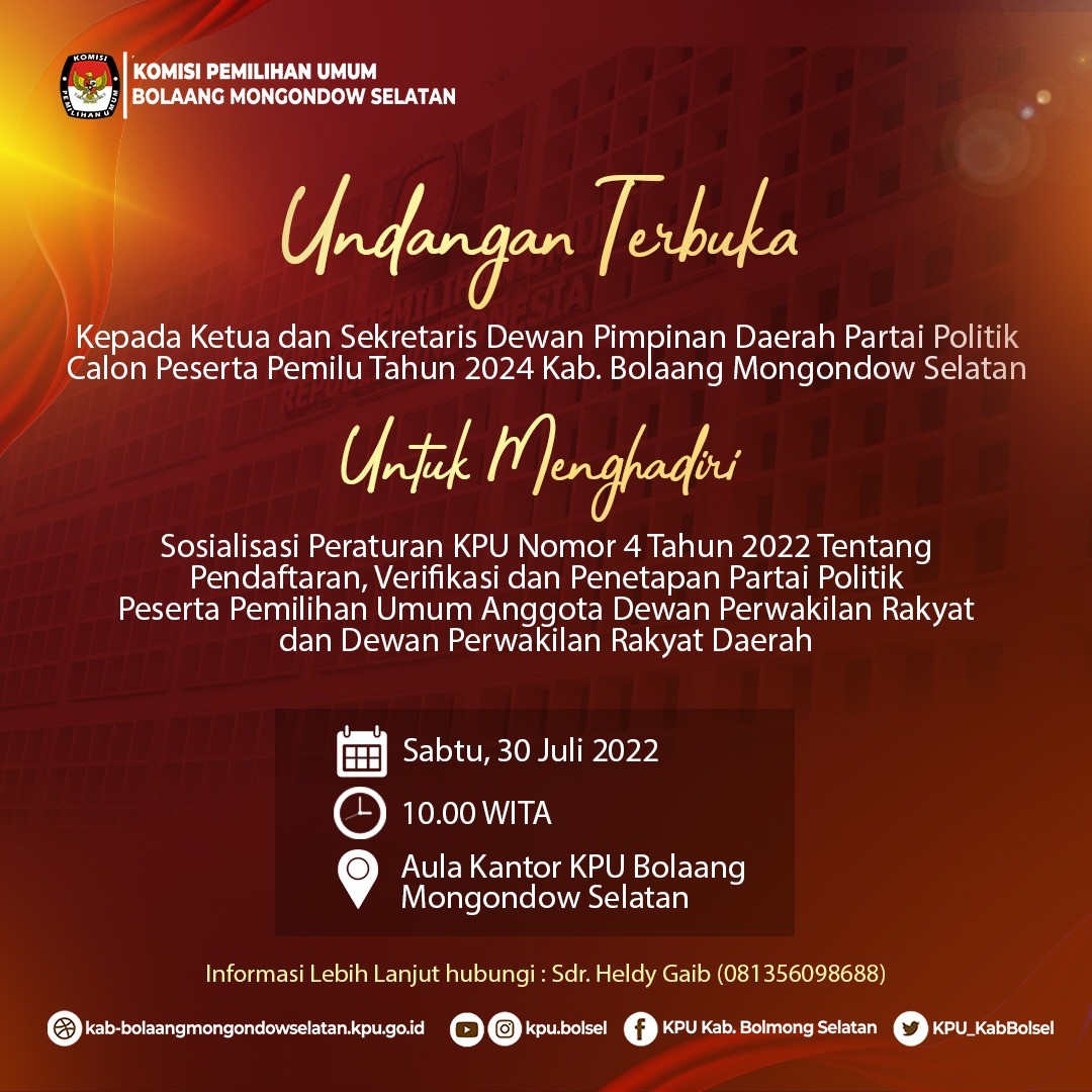 Helpdesk KPU Kab. Bolaang Mongondow Selatan telah dibuka mulai Tanggal 1 Agustus - 14 Desember 2022, Terbuka Setiap Hari Senin-Minggu Pukul 08.00-17.00 WITA, Istrahat Pukul 12.00-13.00 WITA.