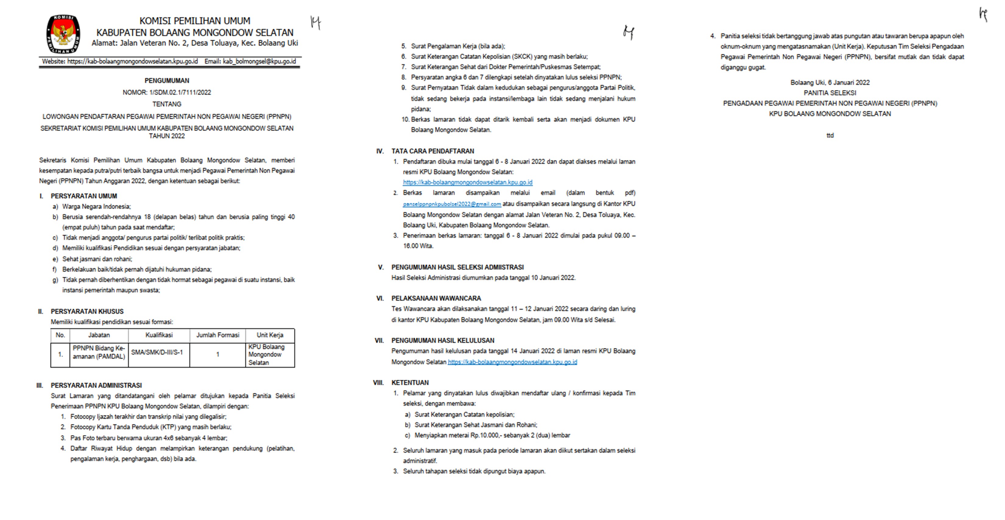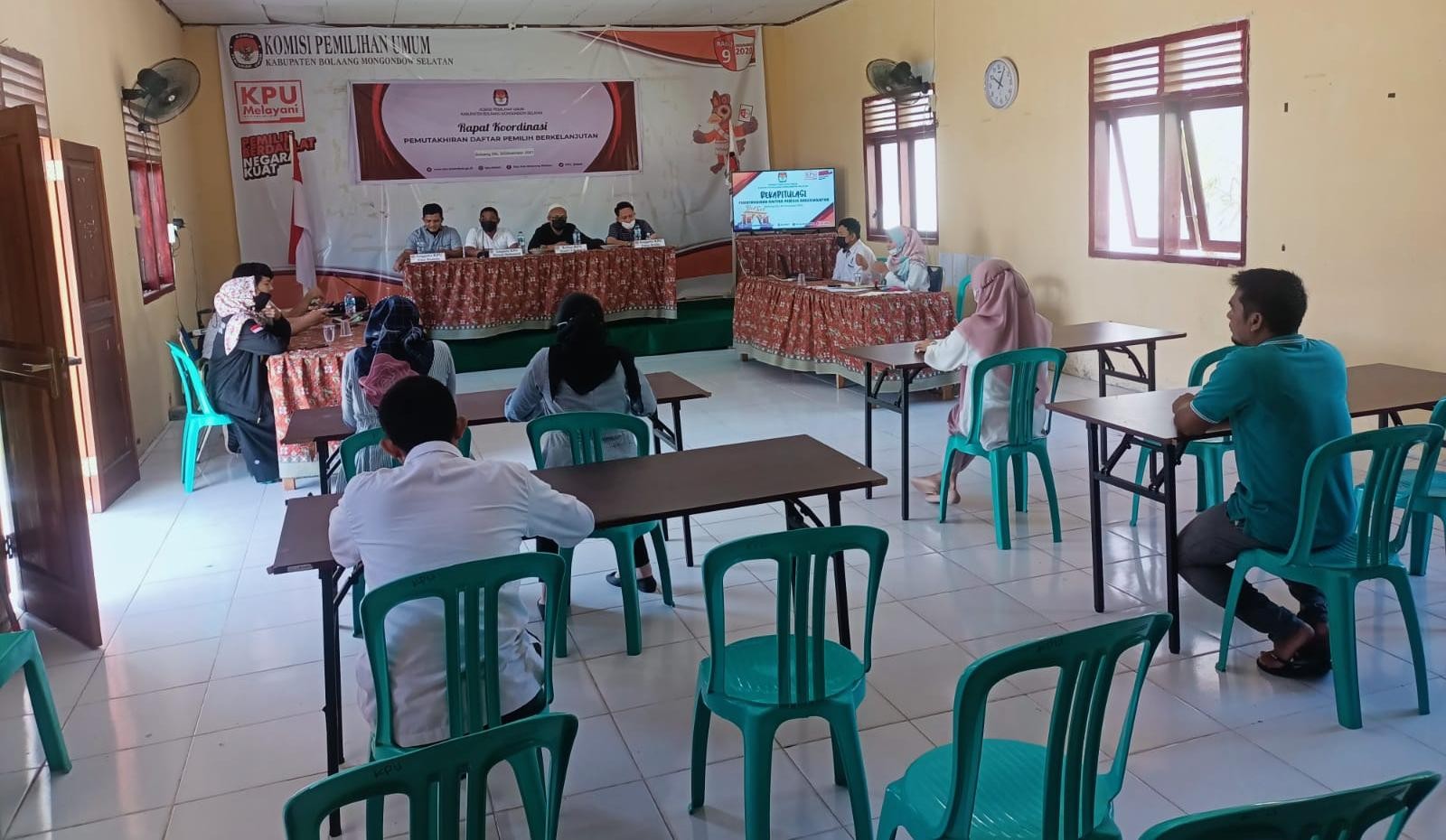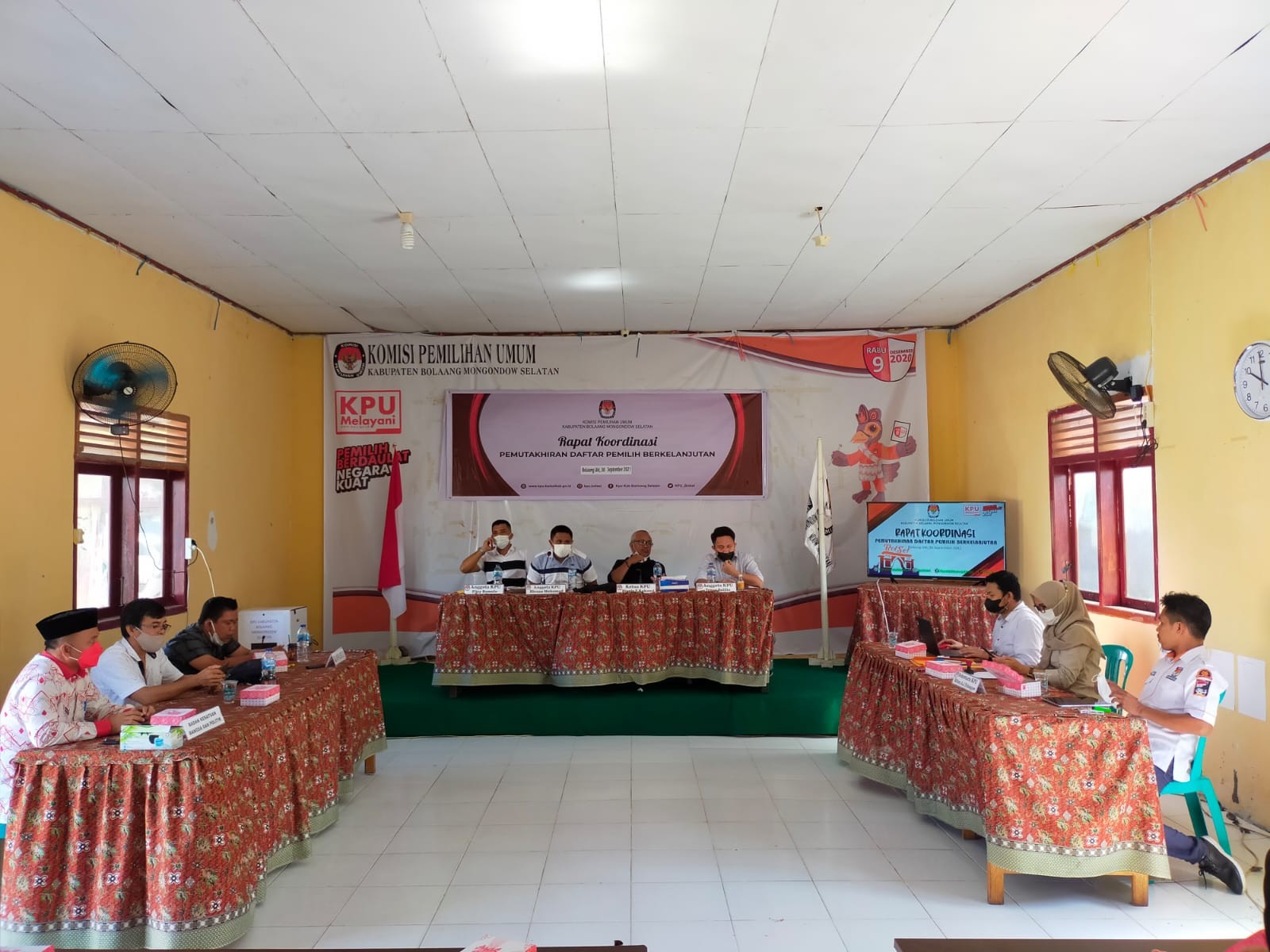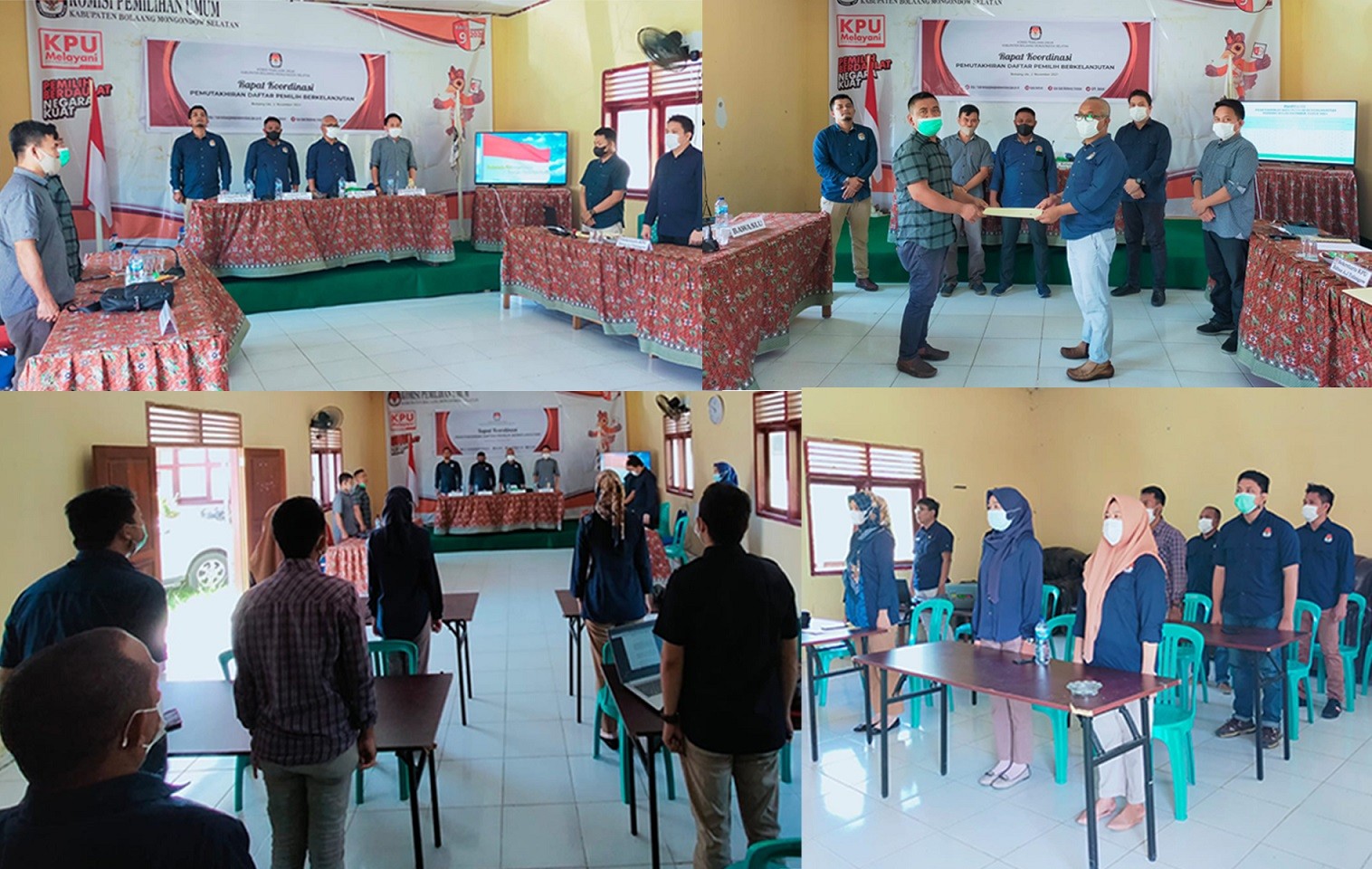 Bolsel-KPU Kabupaten Bolaang Mongondow Selatan melaksanakan ‘Rapat rekapitulasi daftar Pemilih Berkelanjutan dilaksanakan di aula KPU Kabupaten Bolaang Mongondow Selatan Kamis (30/12). Di hadiri oleh Badan Pengawas Pemilu Kabupaten Bolaang Mongondow Selatan Ketua dan anggota KPU Kabupaten Bolaang Mongondow Selatan, dan Sekretariat KPU Kabupaten Bolaang Mongondow Selatan. Rapat rekapitulasi daftar Pemilih Berkelanjutan dibuka oleh Ketua KPU Kabupaten Bolaang Mongondow Selatan Stanly E Kankusi kemudian dilanjutkan oleh Ketua Divisi Program Data dan Informasi Hirsan Mohammad. Dilanjutkan dengan masukan dari Pimpinan Bawaslu mengenai Rapat rekapitulasi daftar Pemilih Berkelanjutan sesuaikan dengan dengan PKPU No 6 Tahun 2021 tentang Pemutakahiran Data Pemilih Berkelanjutan, dan untuk kedepan bekerjasama dengan sekolah-sekolah mengenai pemilih pemula dan bekerjasama dengan dukcapil mengenai data-data pemilih yang pindah masuk sehigga rekaptulasi lebih termutakhirkan. Mengenai hal tersebut di tanggapi oleh Ketua Divisi Program Data dan Informasi mengenai Pemilih pemula dalam PKPU harus mempunyai KTP untuk bisa di masukan dalam DPB maka dari itu dalam menginput data harus hati-hati sehingga data benar benar bisa di pertanggungjawabkan Kemudian Dilanjutkan dengan Rekapitulasi Pemutakhiran Data Pmilih Berkelanjutan oleh KPU Kabupaten Bol-sel. Acara dilanjutkan dengan pembacaan Berita Acara hasil Rekapitulasi Data Pemilih Berkelanjutan yang dilakukan oleh Ketua Divisi Program dan Data, Hirsan Mohamad. Selanjutnya Penyerahan Berita acara dan ditutup dengan foto bersama,Dan Selaanjutnya di lakukan pengumuman DPB untukn memperoleh masukan dan tanggapan dari Masyarakat. Berikut hasil Rekapitulasi DPB Periode Bulan Oktober Tahun 2021 : PENGUMUMAN DATA PEMILIH PERUBAHAN BULAN DESEMBER TAHUN 2021 DAFTAR PERUBAHAN PEMILIH HASIL PDPB BULAN DESEMBER TAHUN 2021 (Linda Ismawati)